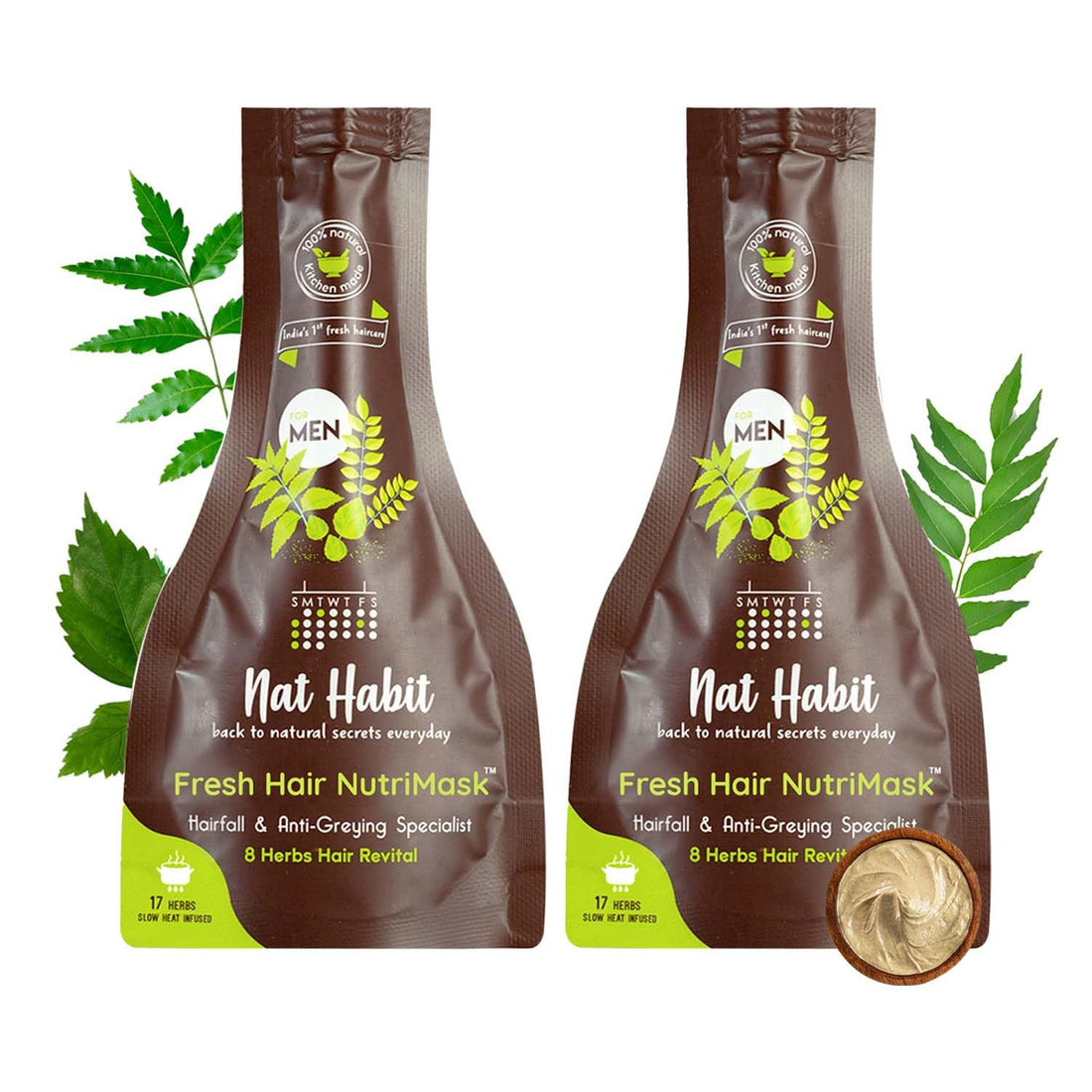 Nat Habit Men's 8 Herbs Hair Revital NutriMask - Hair Mask For Grey Hairs, Conditioning- (Pack of 2 x 40gm)