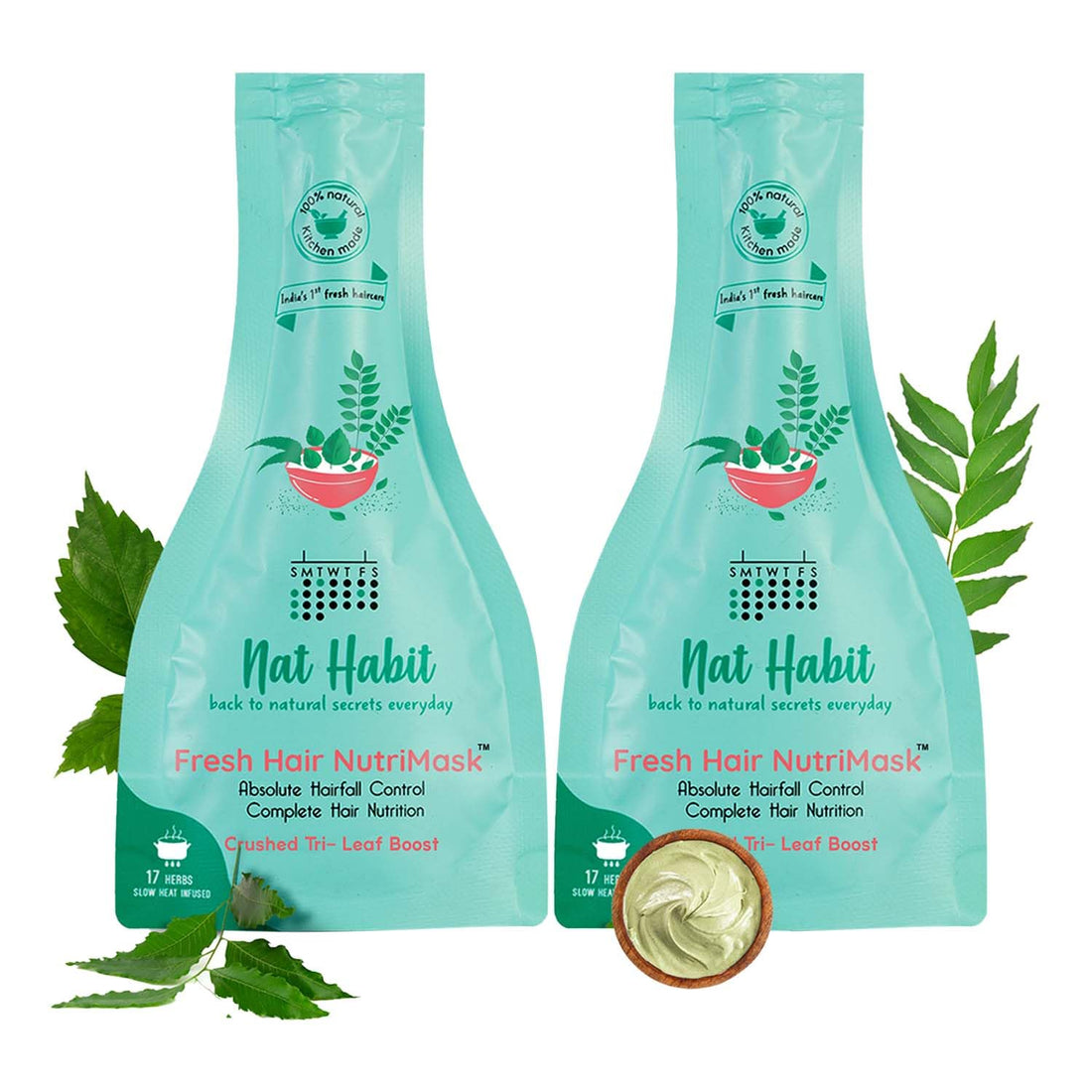 Nat Habit Crushed Tri-Leaf NutriMask - Hair Mask For Hair Fall Control, Conditioning - (Pack of 2 x 40gm)