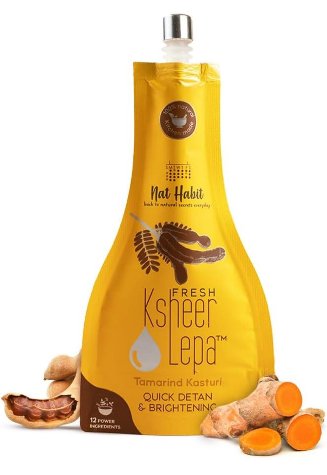 Nat Habit Fresh Tamarind Kasturi Ksheer Lepa Face Mask For Quick Detan & Brightening - (40g of Each, Pack of 2)