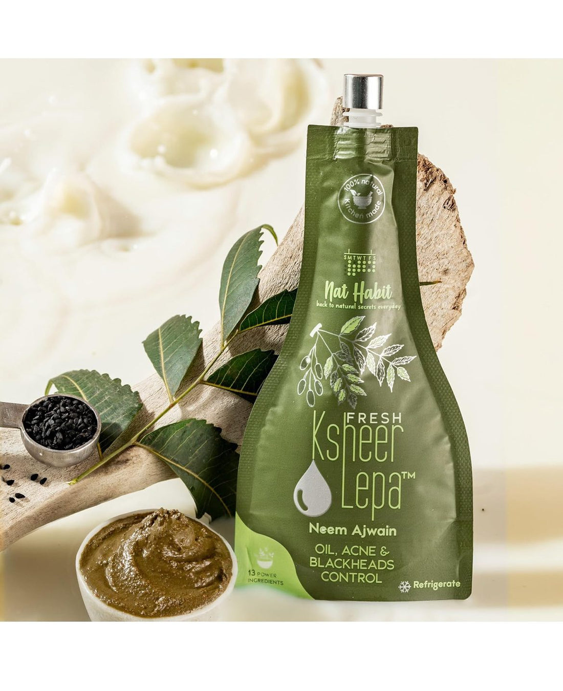 Nat Habit Fresh Neem Ajwain Ksheer Lepa Face Mask For Oily Skin - (40g of Each, Pack of 2)