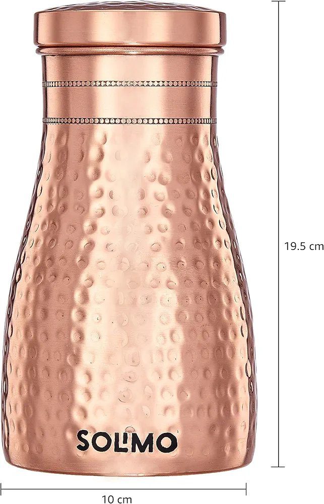 Amazon Brand - Solimo Copper Water Pot | Bedside Pot with Glass | Hammered Finish |950 ml