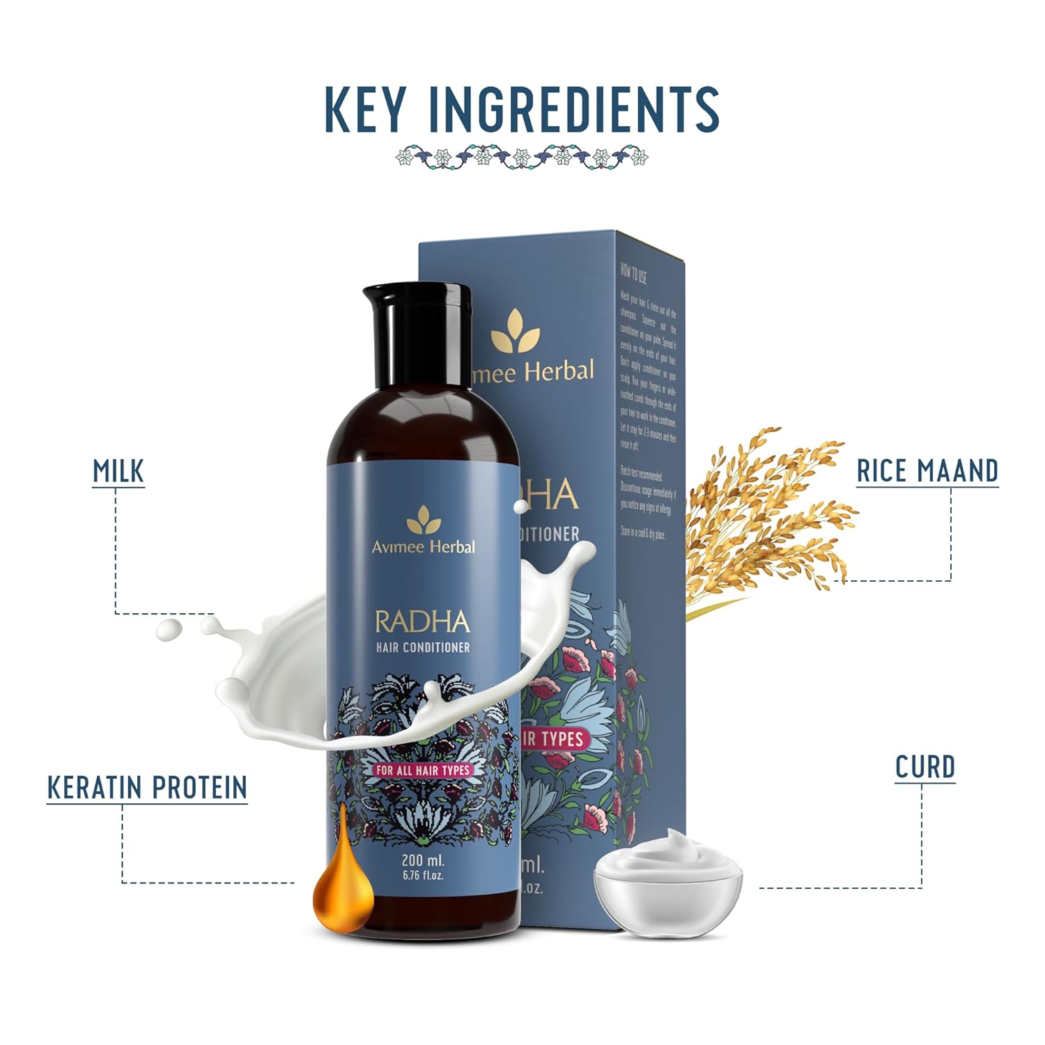 - NOURISHING FORMULA: The Radha Hair Conditioner deeply hydrates, locks in moisture, and repairs dry, damaged hair.