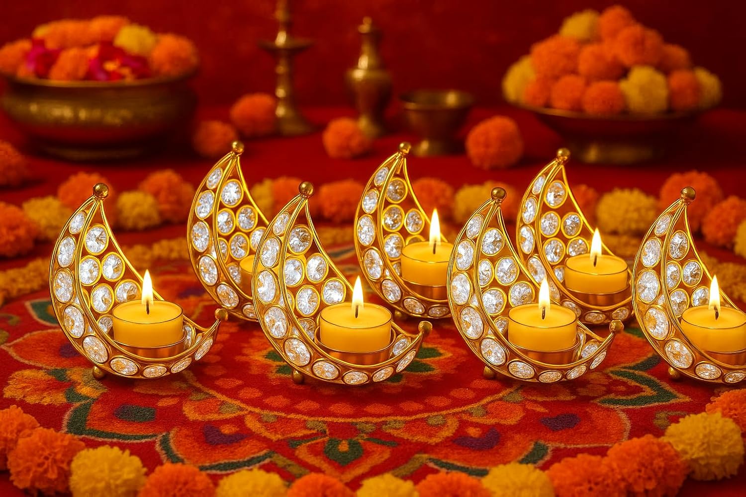 - Multipurpose Tealight Holder – Ideal for tealight candles, diyas, or LED tealights to create a warm, inviting atmosphere during celebrations.