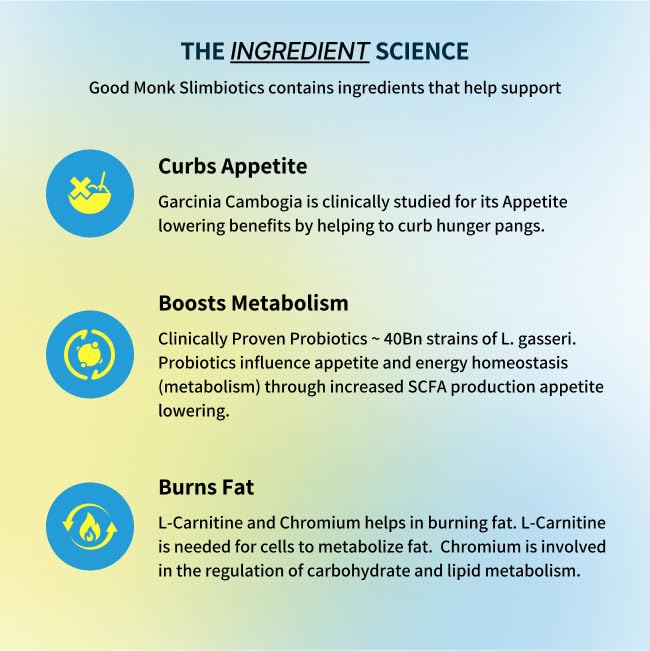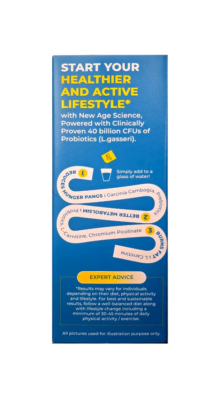 - WEIGHT MANAGEMENT SUPPORT* - Start your healthier and active lifestyle with New Age Science powered with 3-way action of - Good Monk Slimbiotics - Curbs Appetite, Boosts Metabolism and Burns Fat.