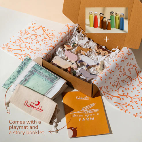 Gubbachhi Once Upon A Farm - 10 Animals, 8 Peg Dolls, Play Mat & Story Booklet