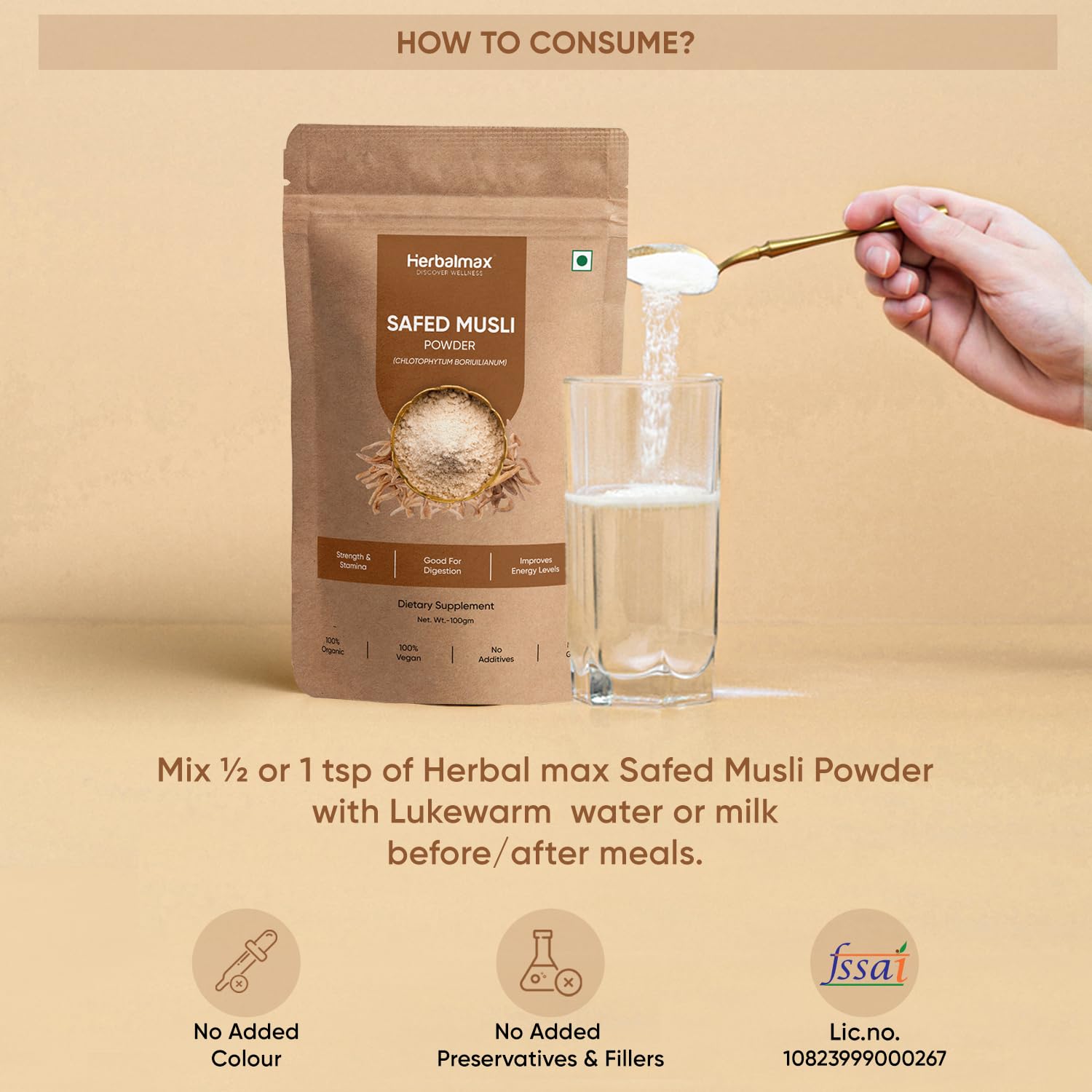 Herbal max Organic Safed Musli Root Powder - 100 g