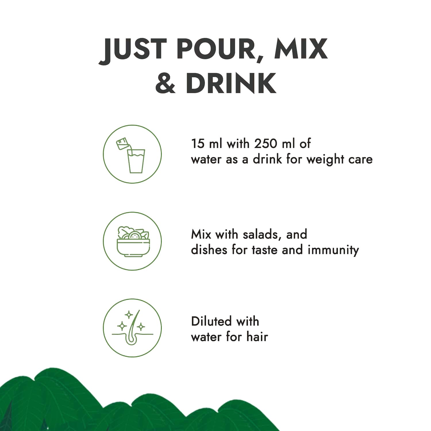 - 10 ML ON AN EMPTY STOMACH: Apple Cider Vinegar can have a strong taste and aroma due to its raw, unfiltered nature. Therefore, the best way to consume it is to dilute 10 ML Apple Cider Vinegar and consume daily on an empty stomach for maximized benefits
