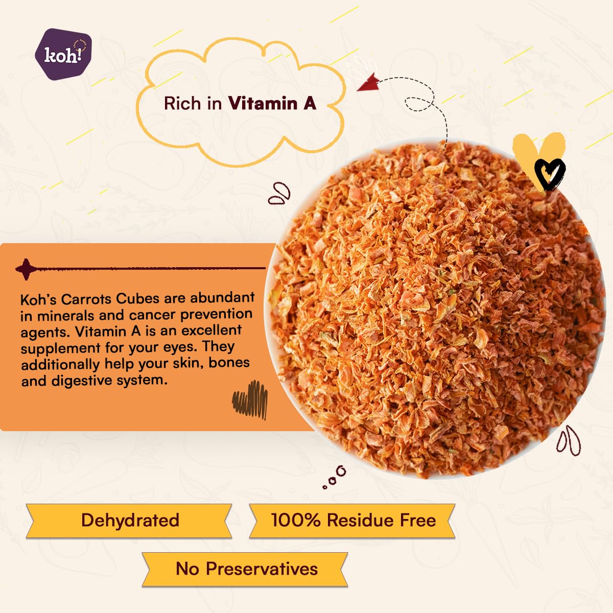 KOH Dehydrated Carrot Cubes -75g