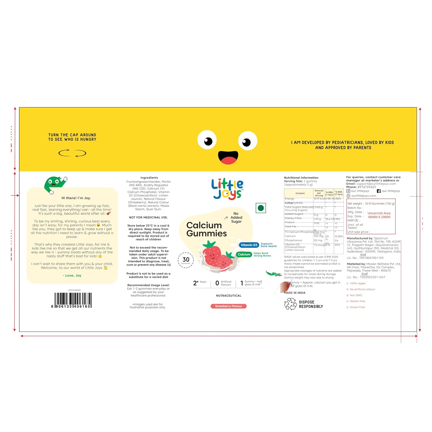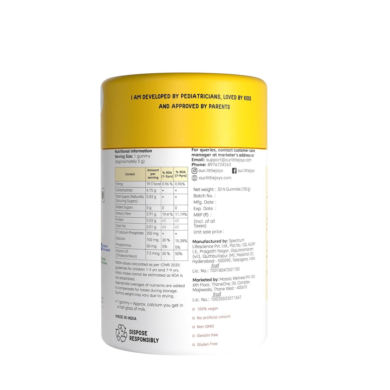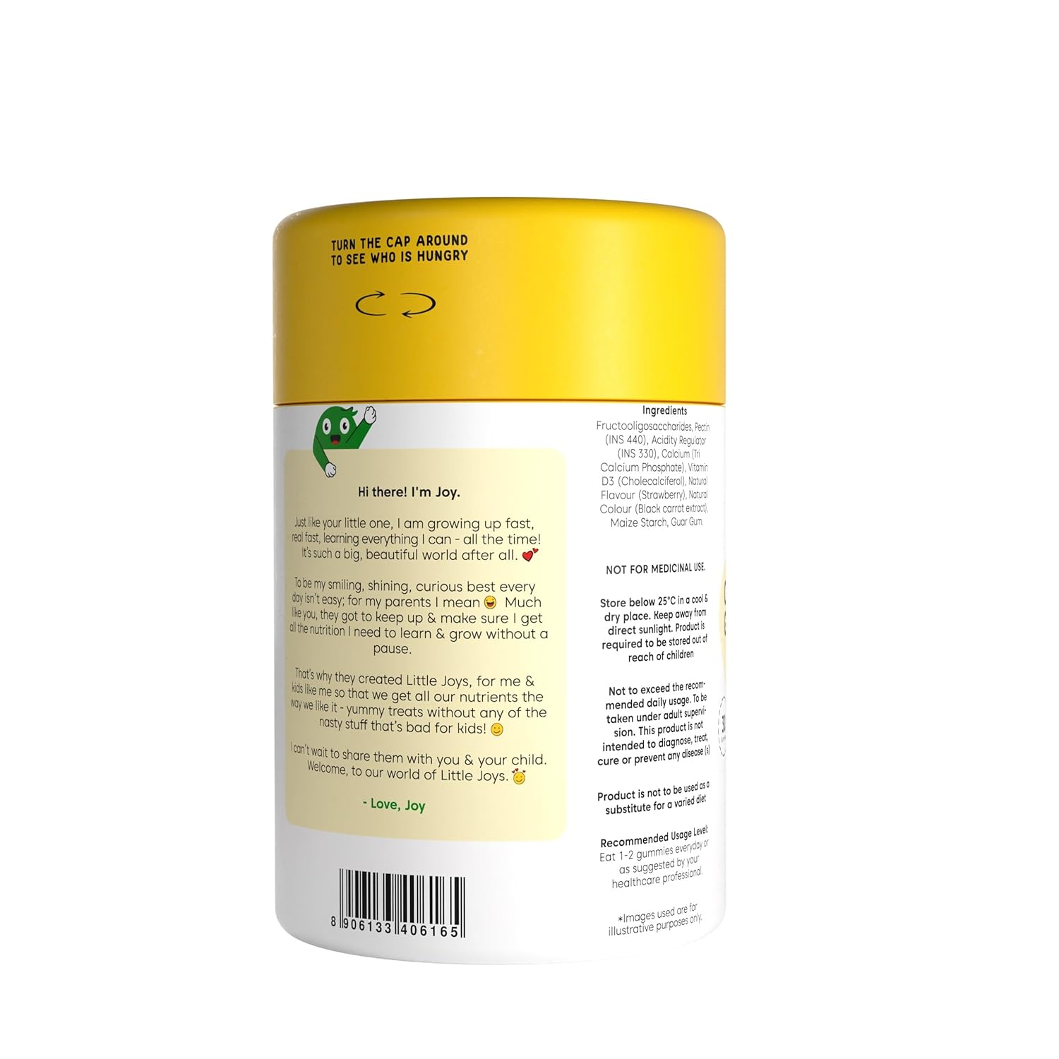 - INTRODUCING: Liitle Joys Calcium Gummies for kids (2+years) in delicious Strawberry flavour with no added white sugar. With the goodness of Almond & Kelp, these gummies helps improve bone density and supports bone health.