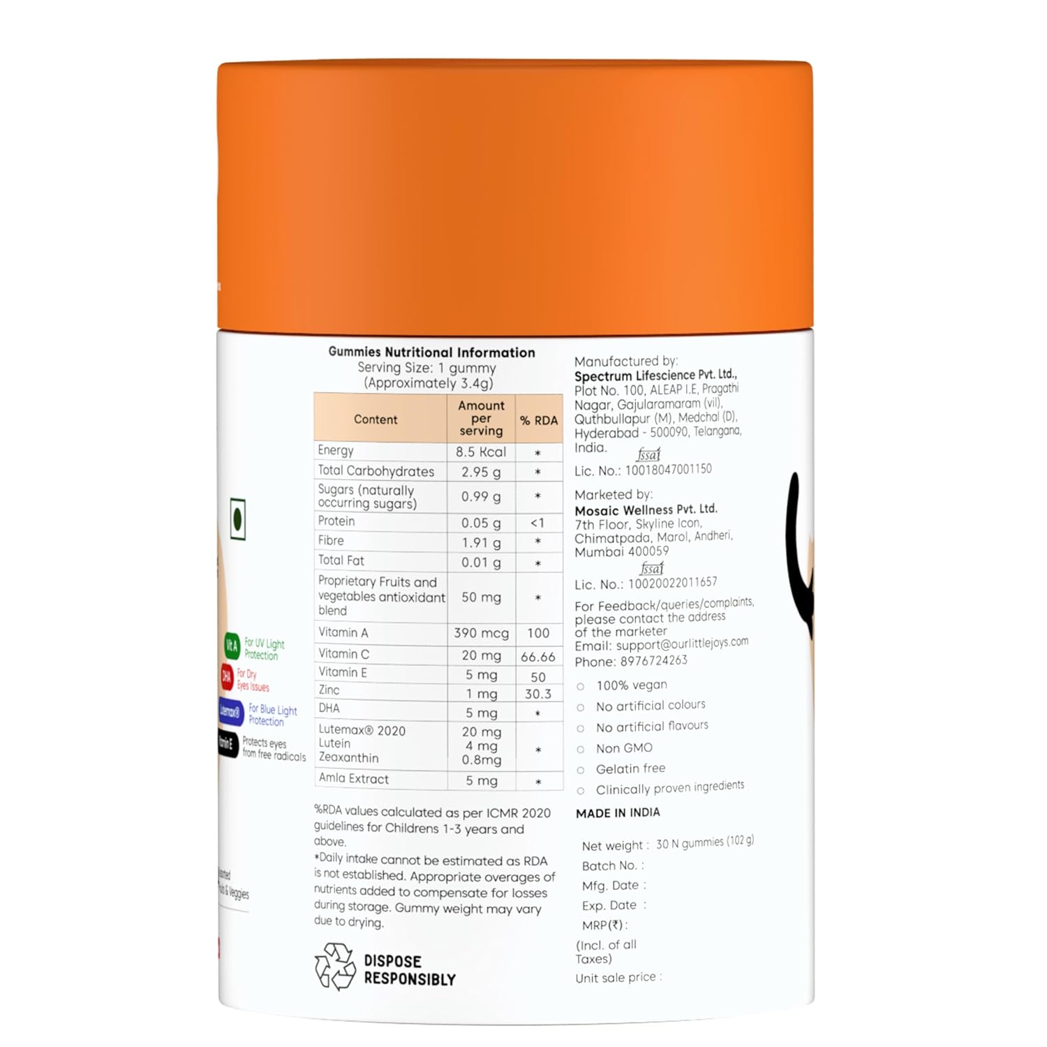 - BENEFITS: With the goodness of all natural ingredients like spinach, amla and multivitamins, these gummies prevents dry eyes, protects eyes from digital rays, improves eye health and helps naturally sleep better