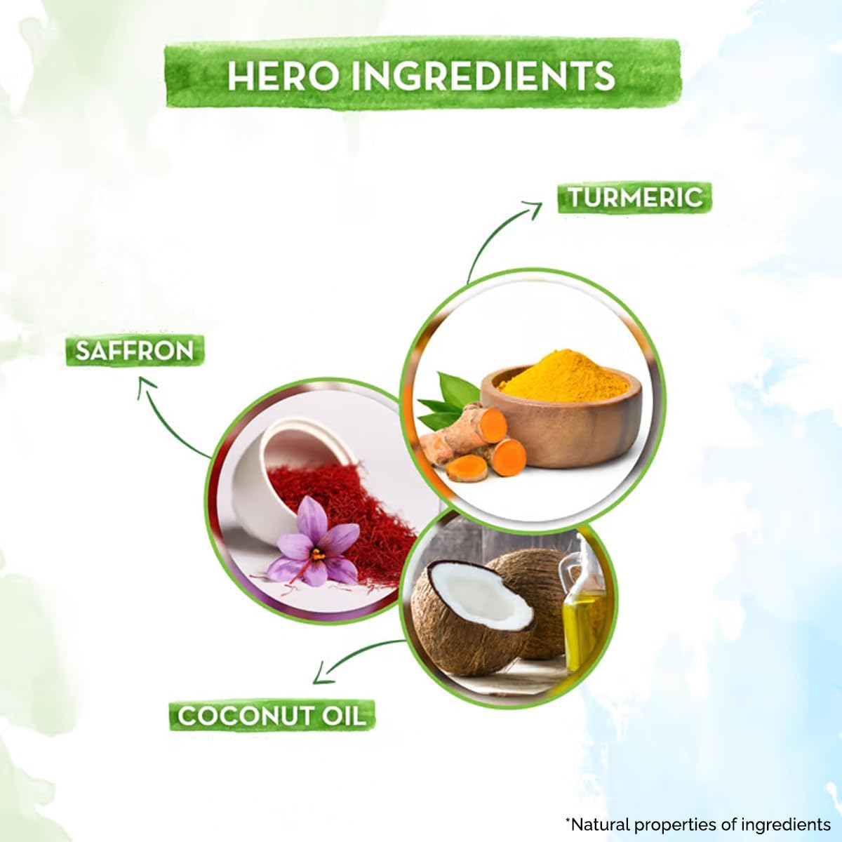 - PROMOTES EVEN SKIN TONE: Turmeric, rich in antioxidants, protects the skin cells from free radical damage and lightens the skin tone while improving complexion.