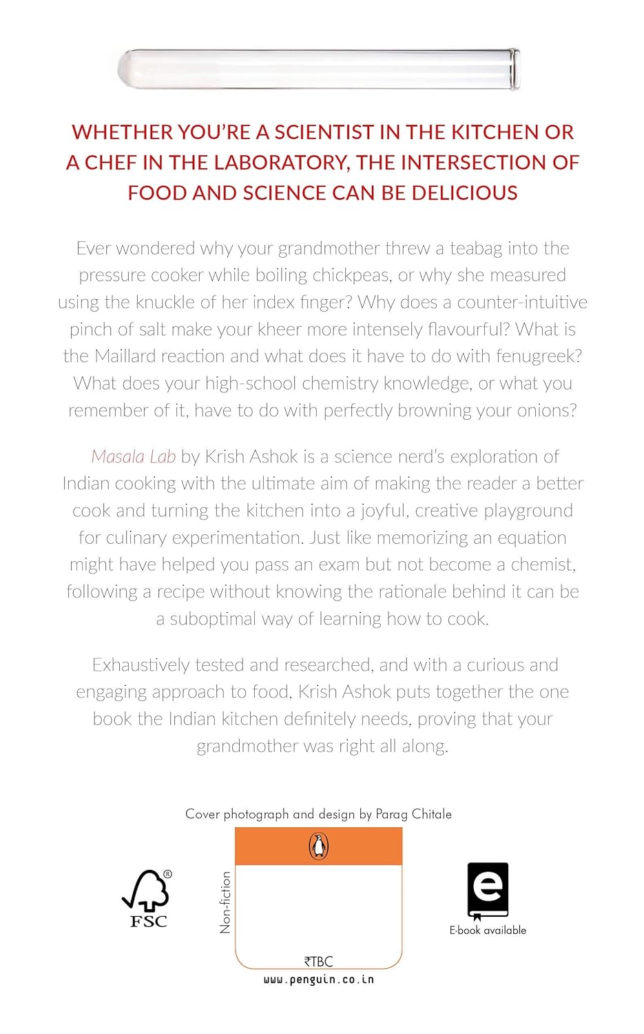 Masala Lab by Krish Ashok is a science nerd's exploration of Indian cooking with the ultimate aim of making the reader a better cook and turning the kitchen into a joyful, creative playground for culinary experimentation. Just like memorizing an equation might have helped you pass an exam but not become a chemist, following a recipe without knowing its rationale can be a sub-optimal way of learning how to cook.
