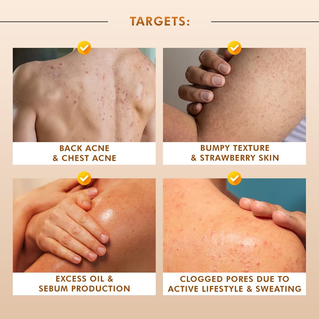 - Exfoliates to Reduce Body Acne : Exfoliates to reduce body acne, bumpy & strawberry skin. It also unclogs pores and keeps excess oil away to prevent future breakouts.