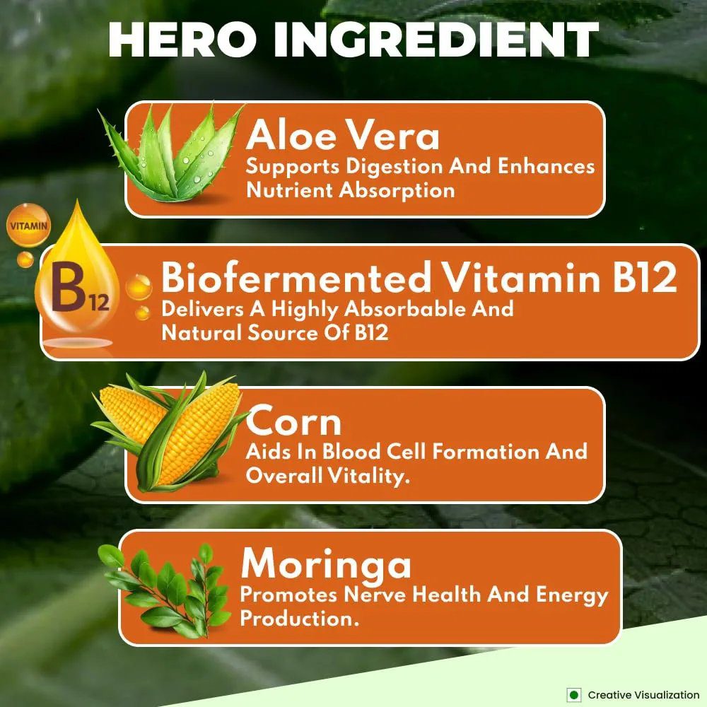 Nutrela Vitamin B12 Biofermented Plant Based Supplement for Men & Women with Moringa and Aloevera Extract - 30 Veg Capsules