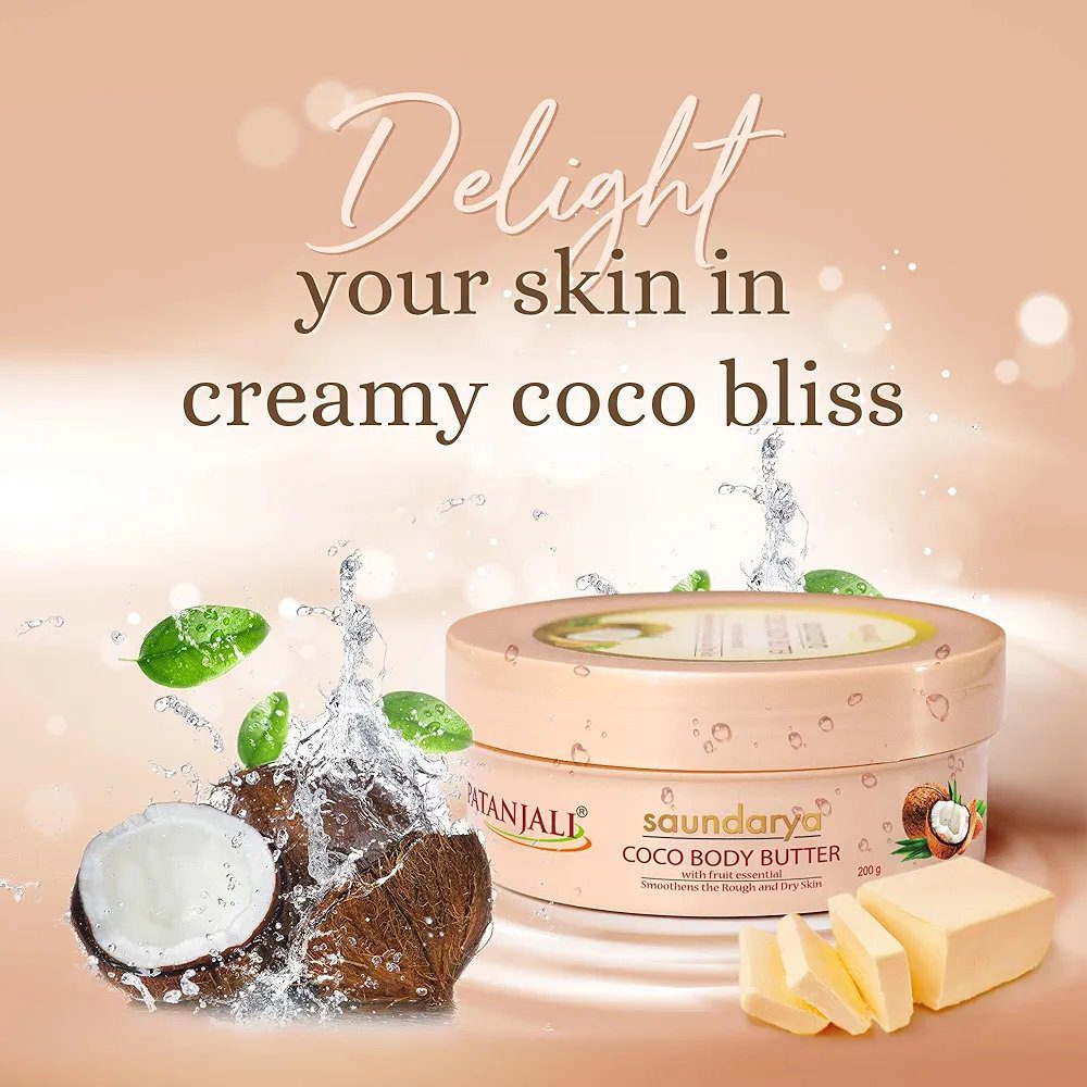 Patanjali Saundarya Coco Body Butter Cream 200g, Cocoa Butter Moisturizer with a Blend of Natural Oils for Deep Hydration and Nourishment, Leaving Skin Soft and Smooth, Non-Sticky, Suitable for All Skin Types