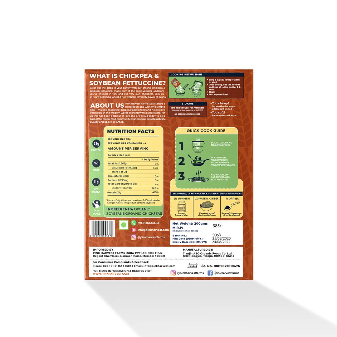 Pink Harvest Farms Chickpea and Soybean Fettuccine Pasta | No Rice - No Maida