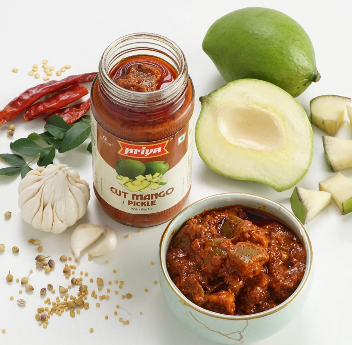 Priya Foods’ Cut Mango Pickle contains the highest percentage of cut mango pieces and wholesome kitchen ingredients:-