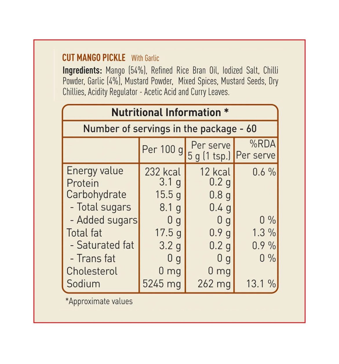 A traditional recipe, carefully sourced fruit and a perfect blend of spices, mustard and oil come together in ultimate harmony to make this pickle an evergreen accompaniment with breakfast, snacks, and meals. Available with and without garlic.