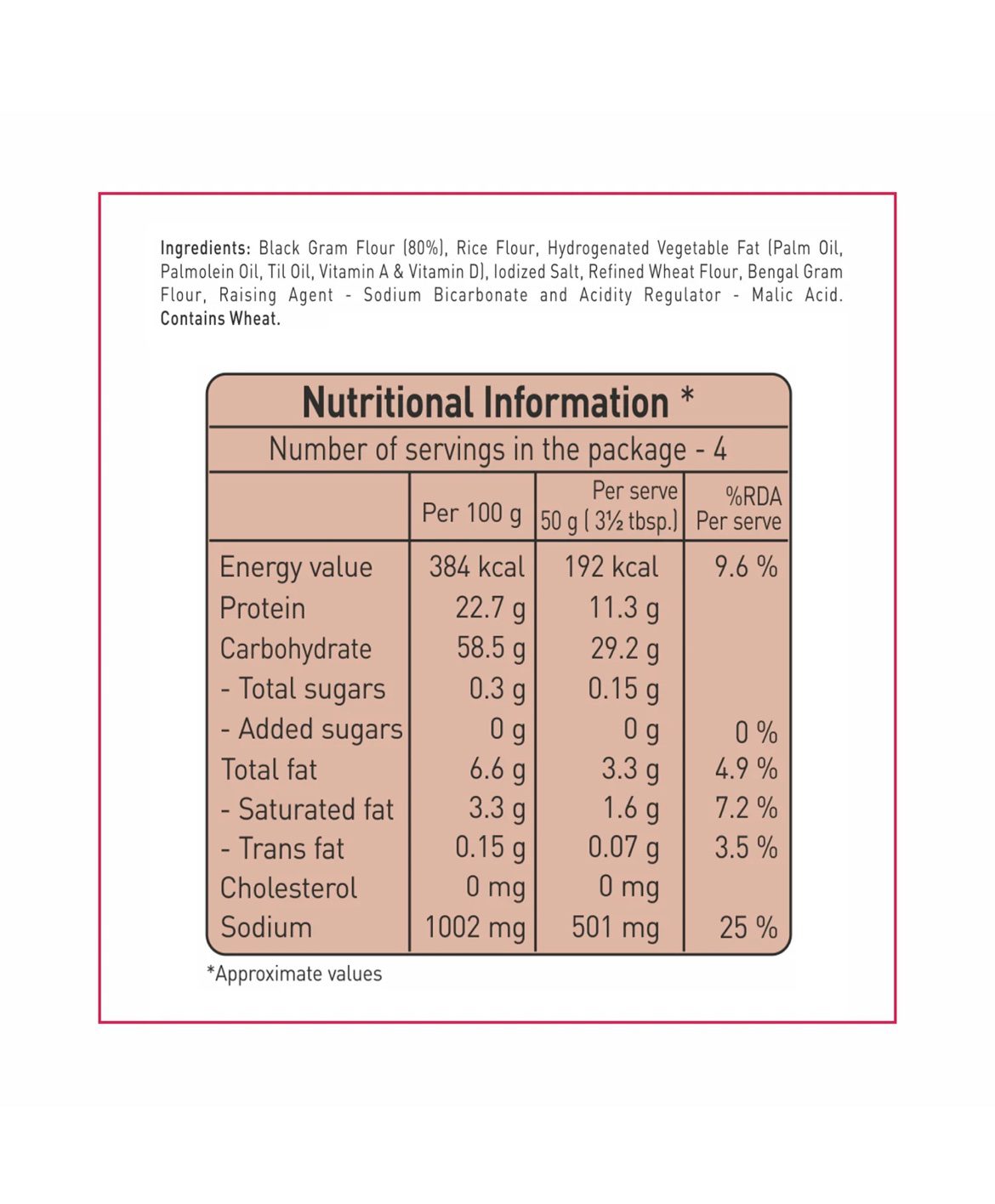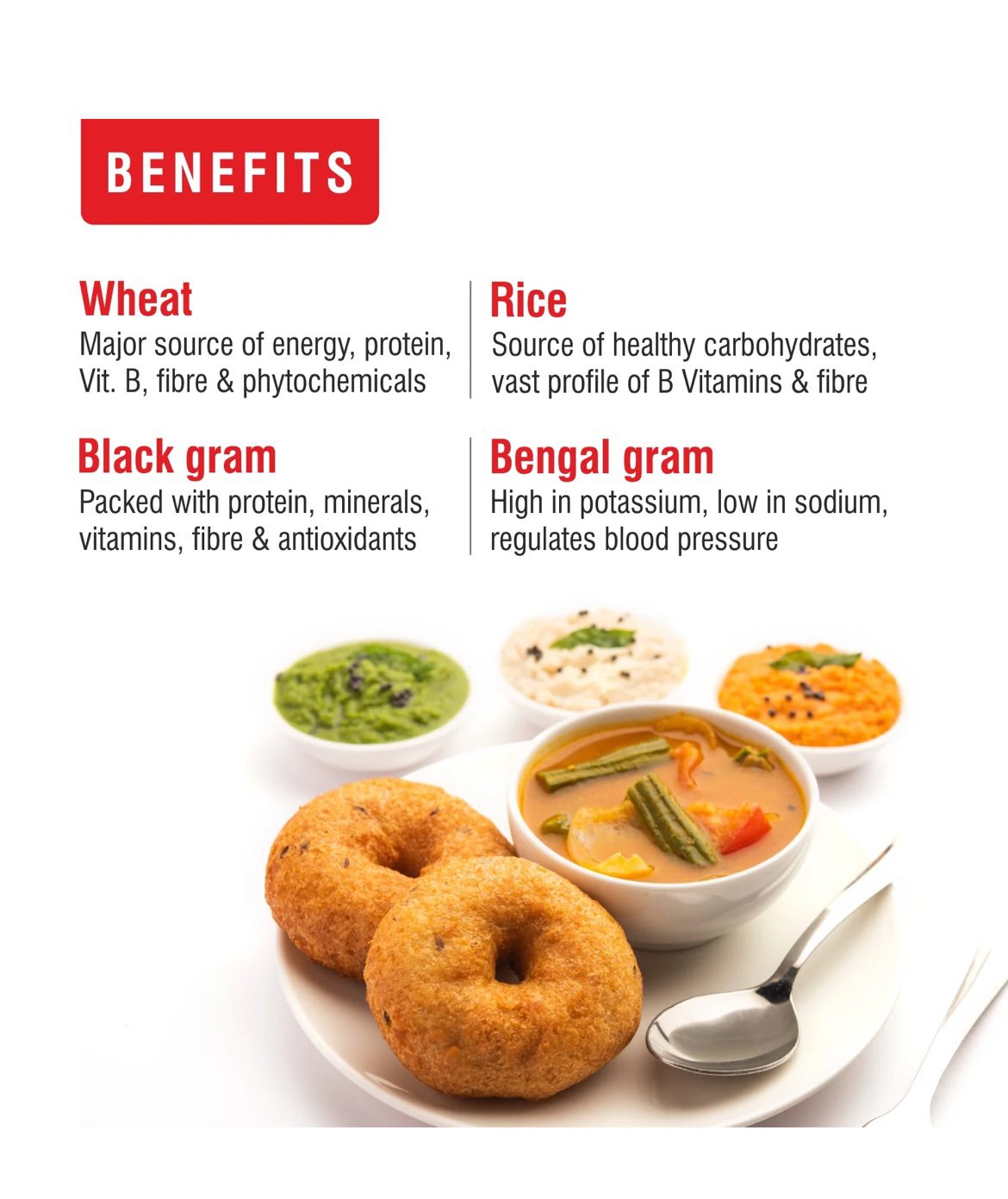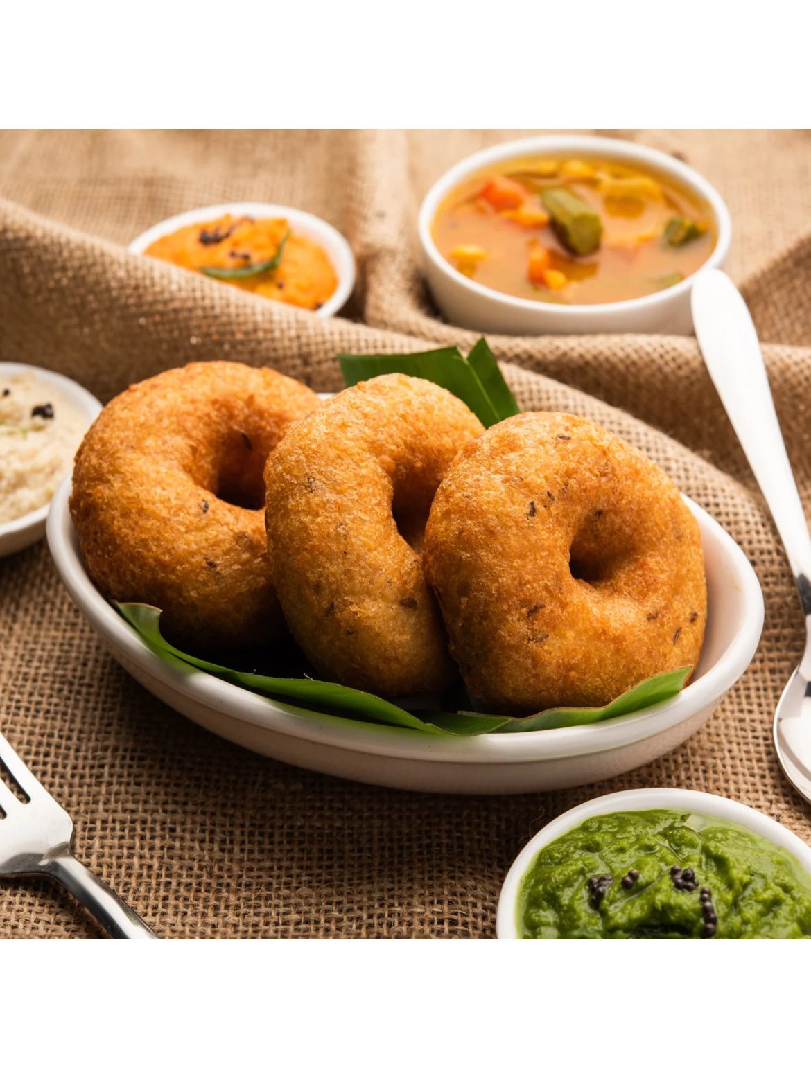 A ready‑mix blend that lets you make crunchy, golden vadas fast. Just add water, shape the mix into doughnut‑shaped fritters, and deep fry.