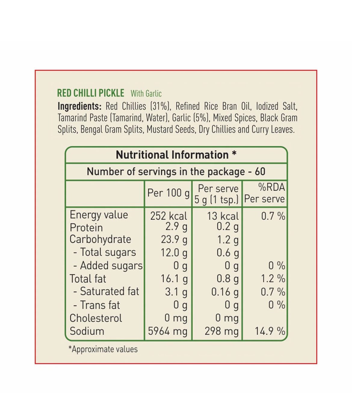 Priya Red Chilli Pickle - Without Garlic - Min 300 G