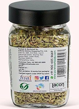 Pure Tree Certified Organic Fennel Seeds | | Glass Jar | Saunf 125 Gm