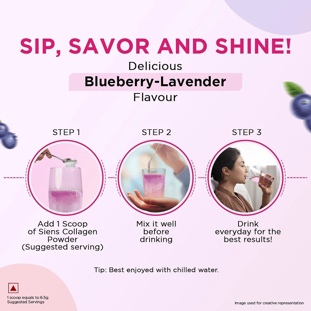 Siens By Dabur Hydrolyzed Marine Collagen-100g | Made with Japanese technology | Supplement for Women | For Skin Radiance & Hydration | Blueberry Lavender Flavour