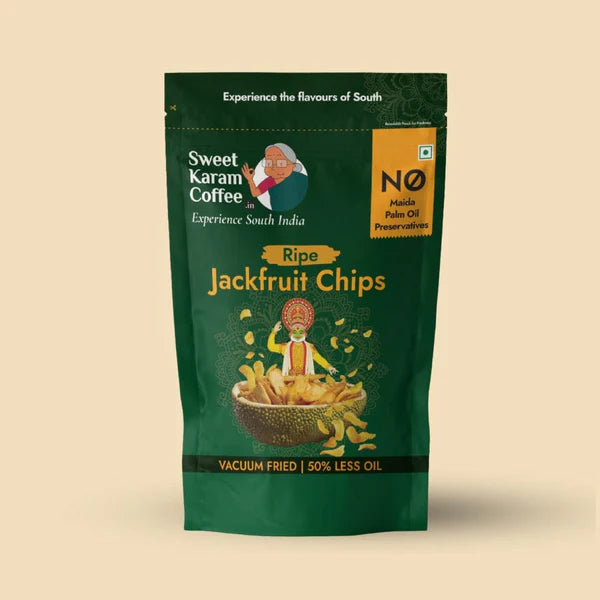 ndulge in the sweet, tropical goodness of Sweet Karam Coffee's Ripe jackfruit chips. Carefully selected ripe jackfruit is transformed into thin, crispy slices, preserving the fruit's natural sweetness and tropical flavour.