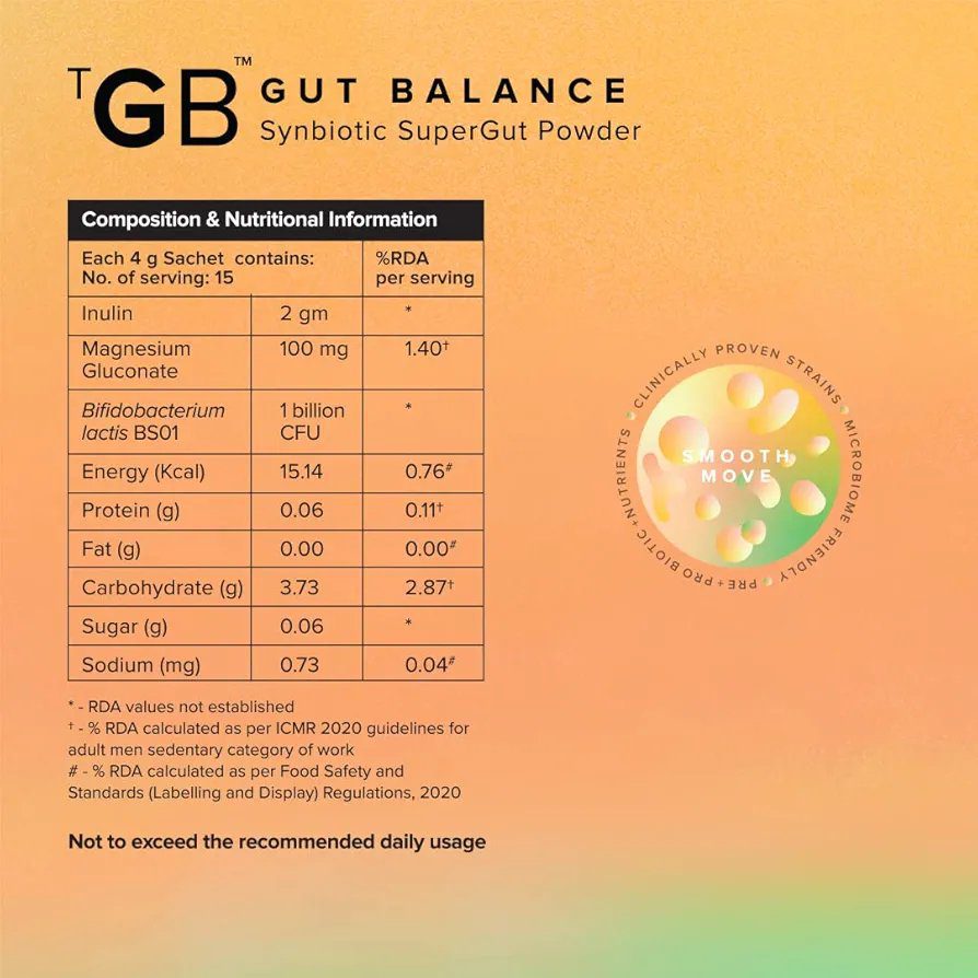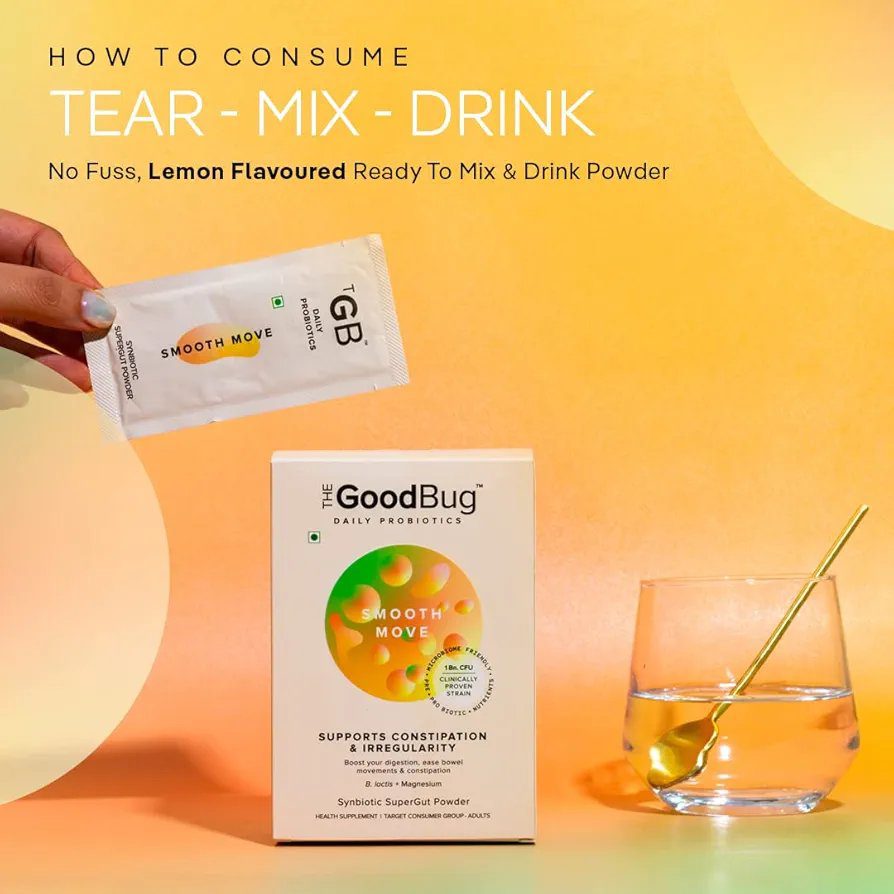 The Good Bug Smooth Move SuperGut Powder for Constipation Relief & Bowel Movement|Pre & Probiotic Supplement for Unisex|1 Billion CFU of Clinically Proven Strains|15 Days Pack, 30 grams