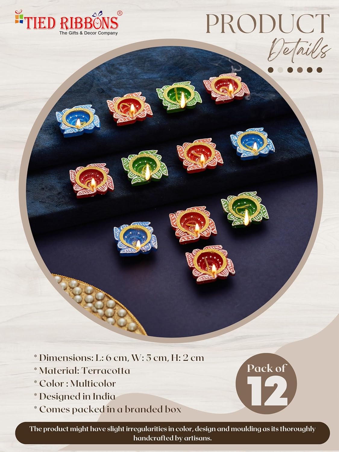 - HANDCRAFTED ELEGANCE: Our Handmade Terracotta Tealight clay diyas are a testament to the age-old tradition of handmade craftsmanship. Each diya is carefully molded by skilled artisans, making every piece a unique work of art for Diwali puja decoration. These clay diyas come pre-filled with high-quality wax, ensuring hassle-free and long-lasting Diwali decoration for home.
