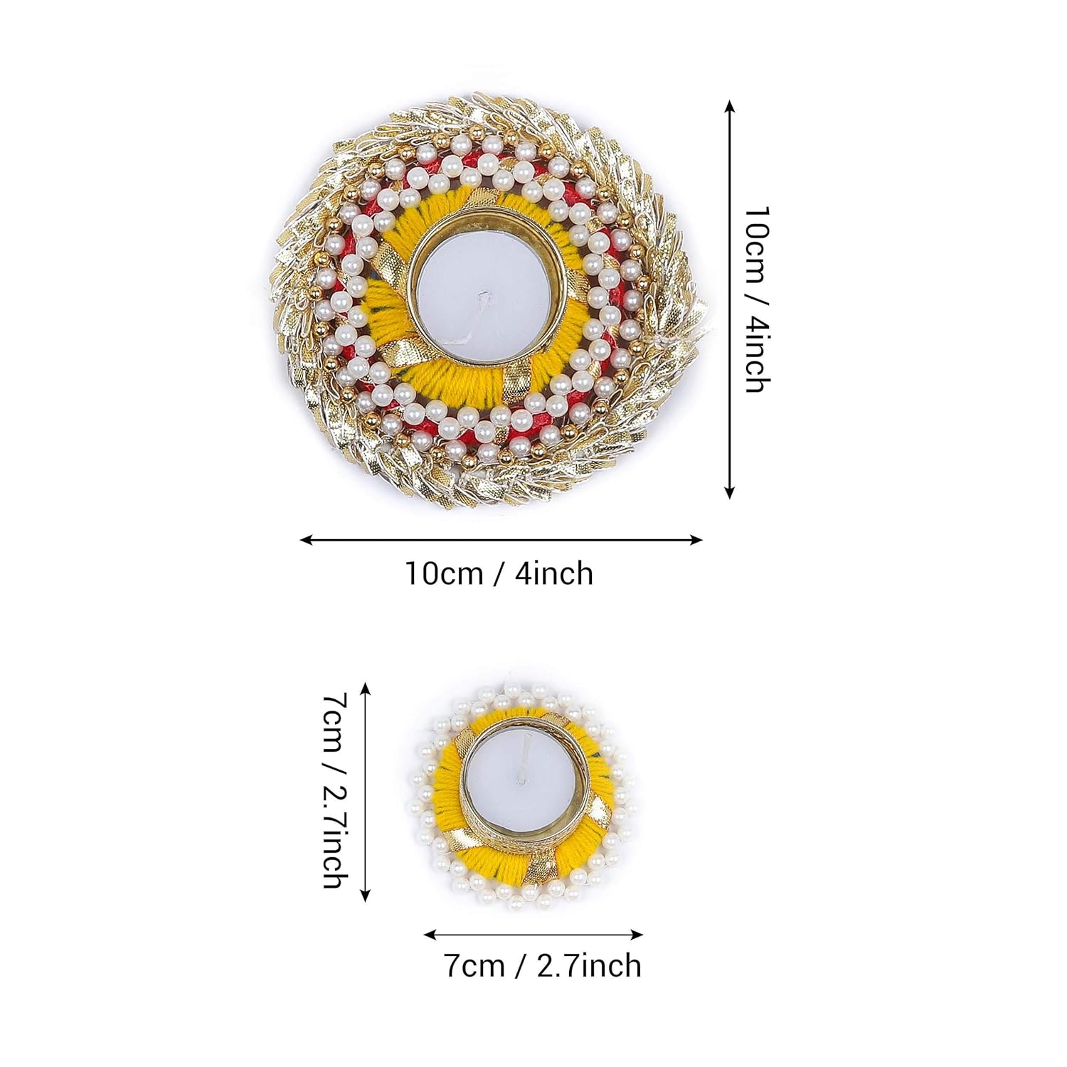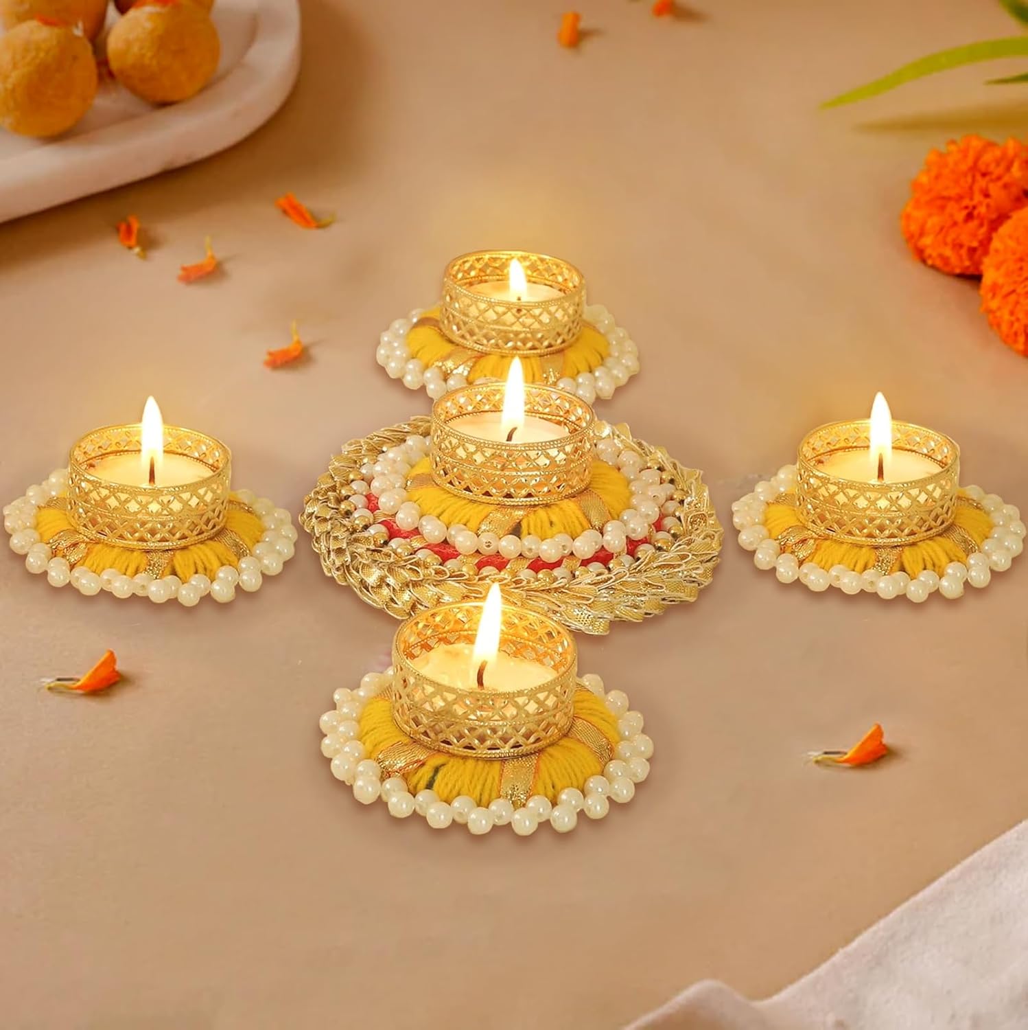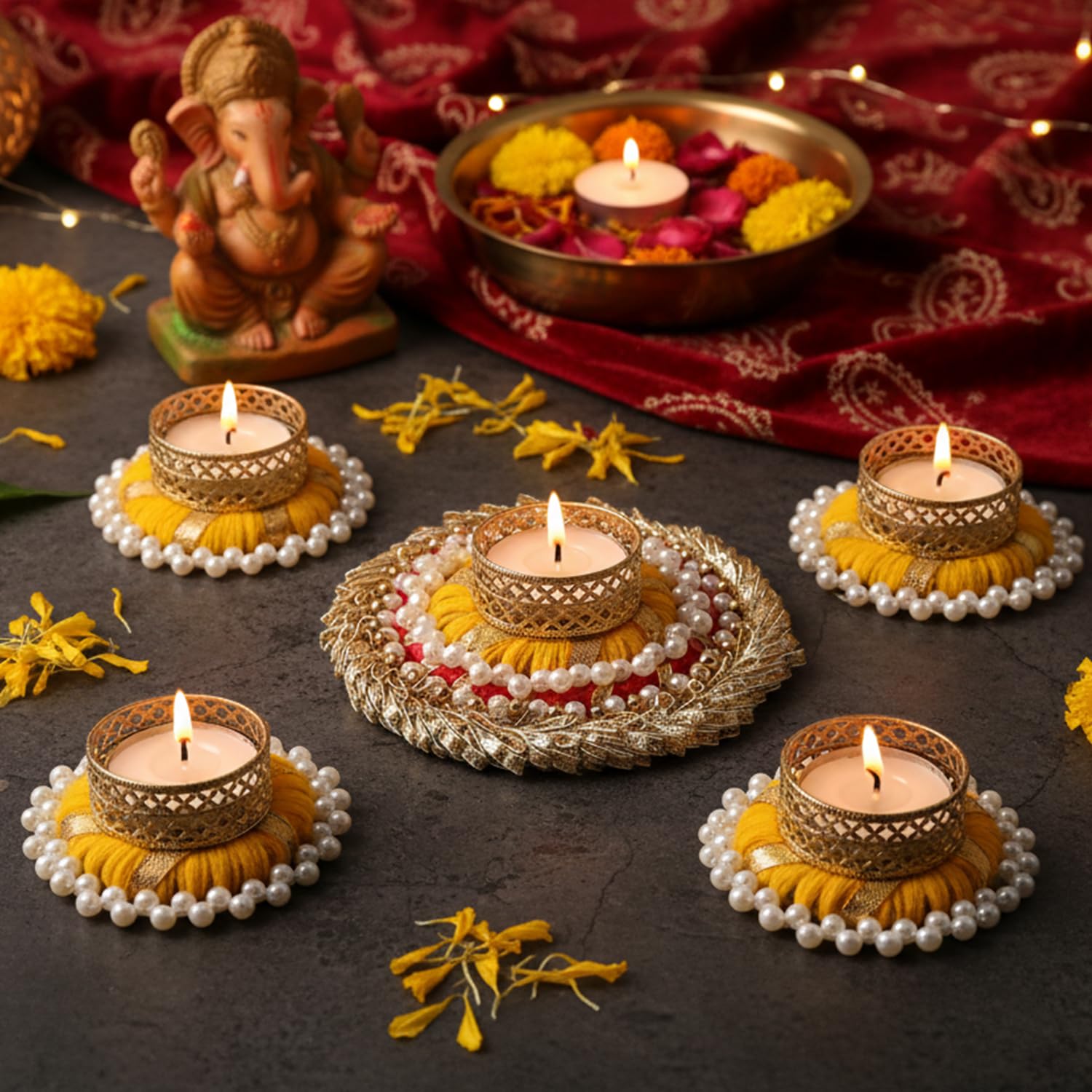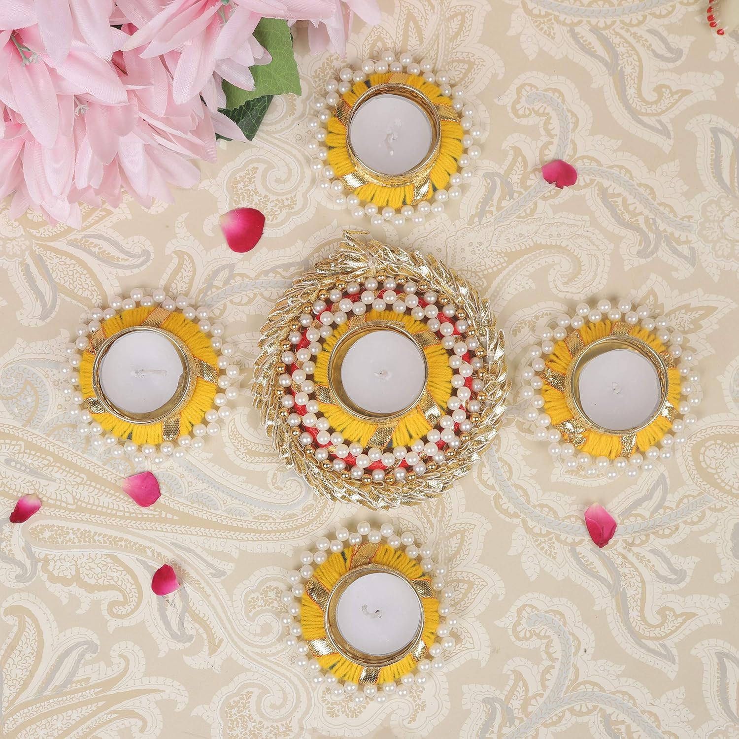 TIED RIBBONS Set of 5 Florals Tealight Candle Holders for Diyas Home Decorations Centerpieces Votives