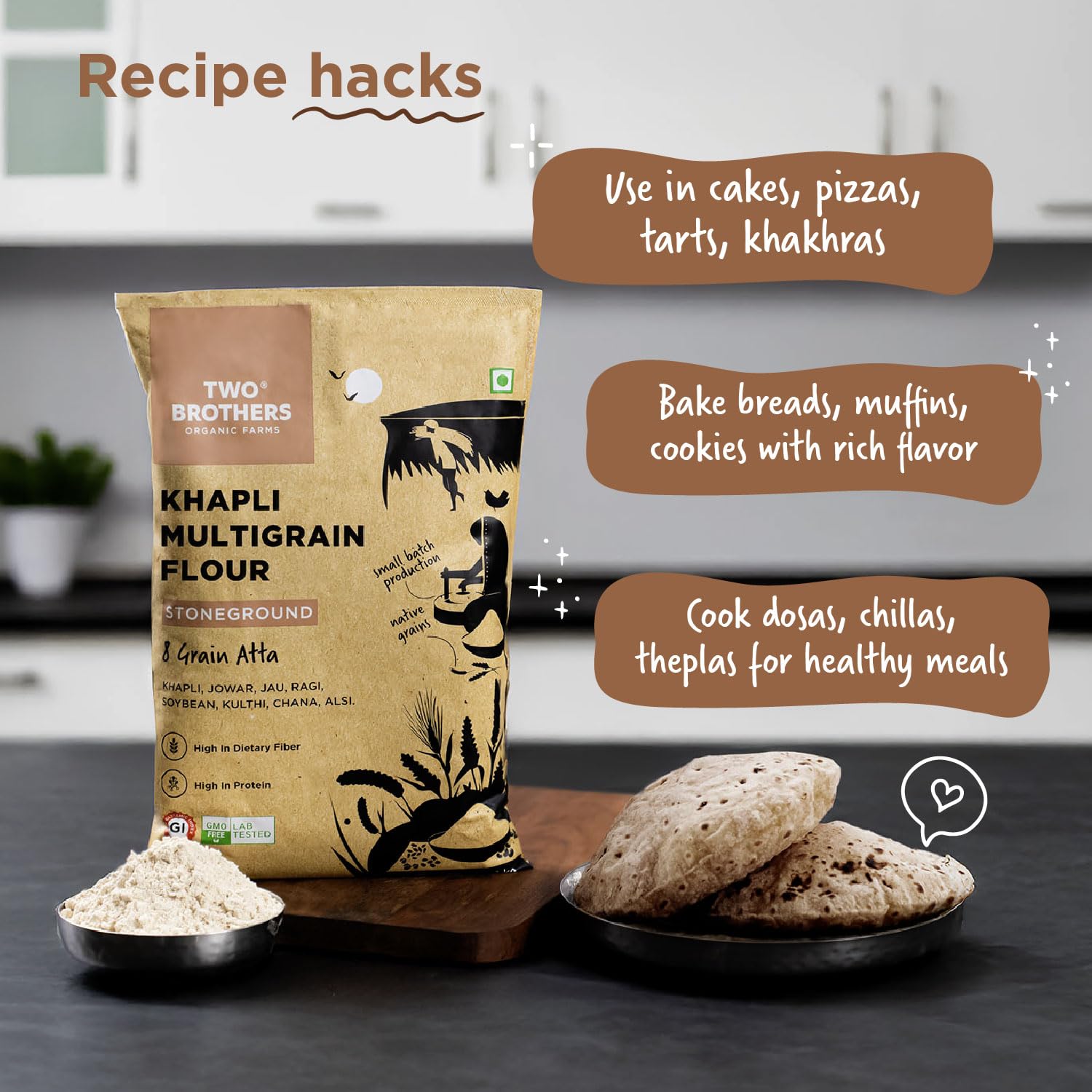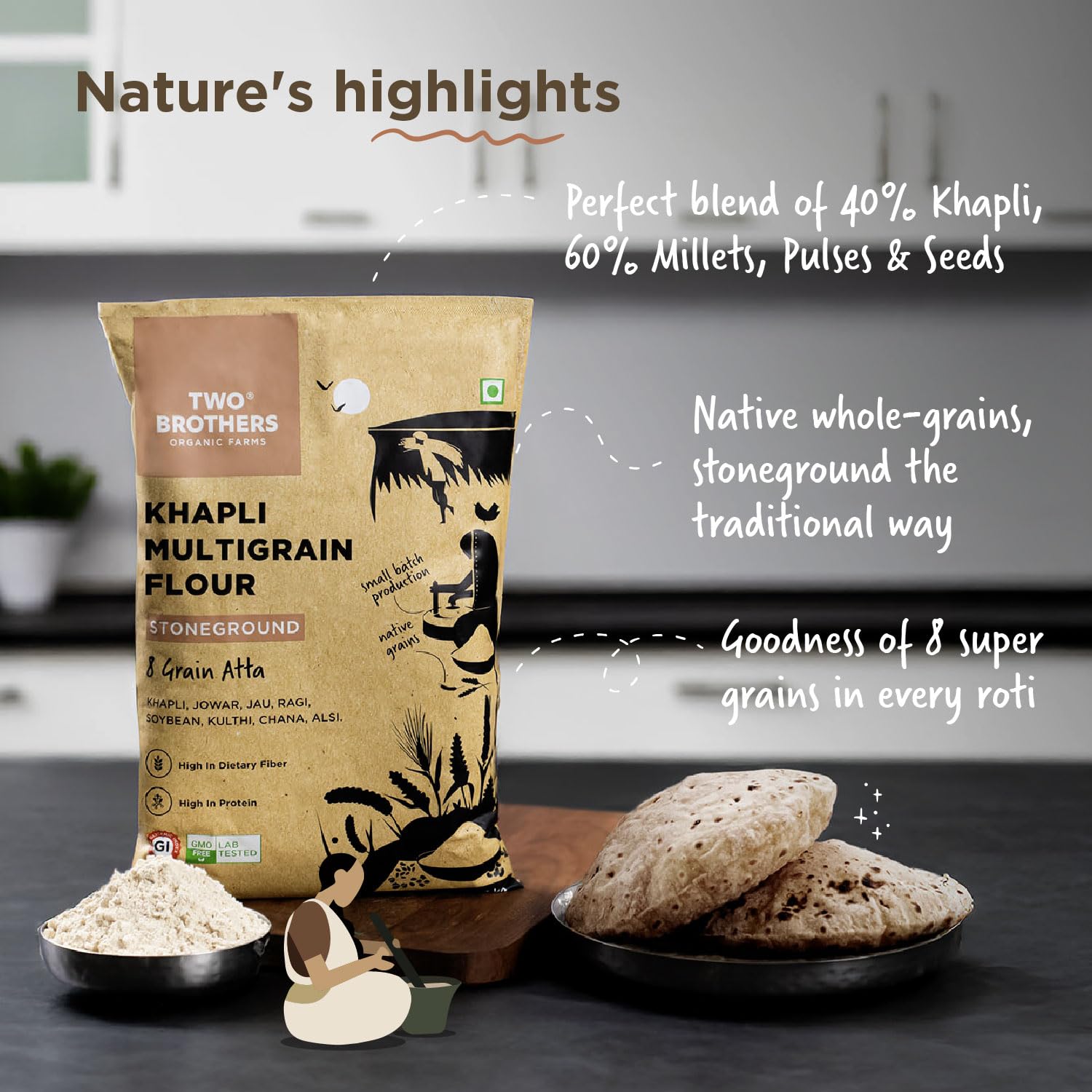 Two Brothers Organic Farms Khapli Multigrain Atta (1kg)