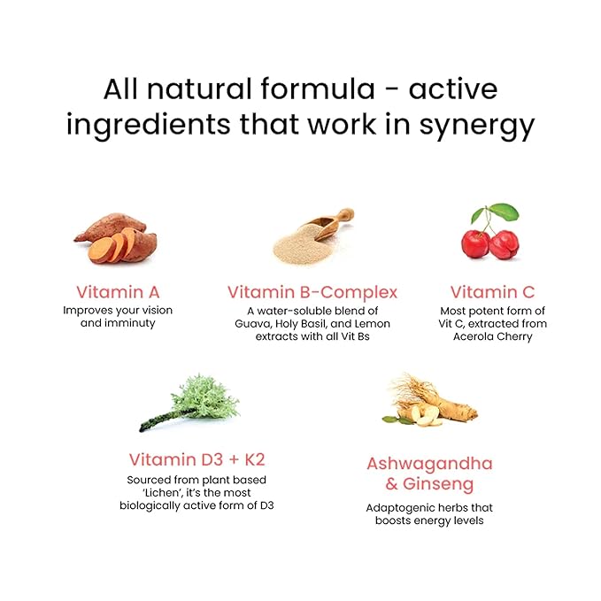 Plant Based Multivitamin for Men & Women with 100% RDA of Zinc, B-Complex, Vitamin C, D3 + K2(MK7), Ashwagandha & Ginseng for Immunity & Energy