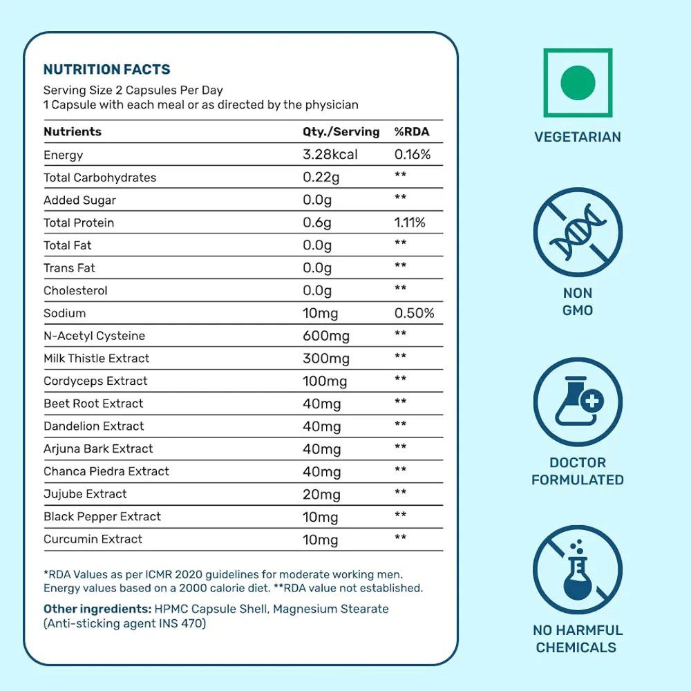 What's Up Wellness Lung & Liver Detox Supplement Capsules with N-Acetyl Cysteine and Milk Thistle, For Fatty Liver, 30 Capsules