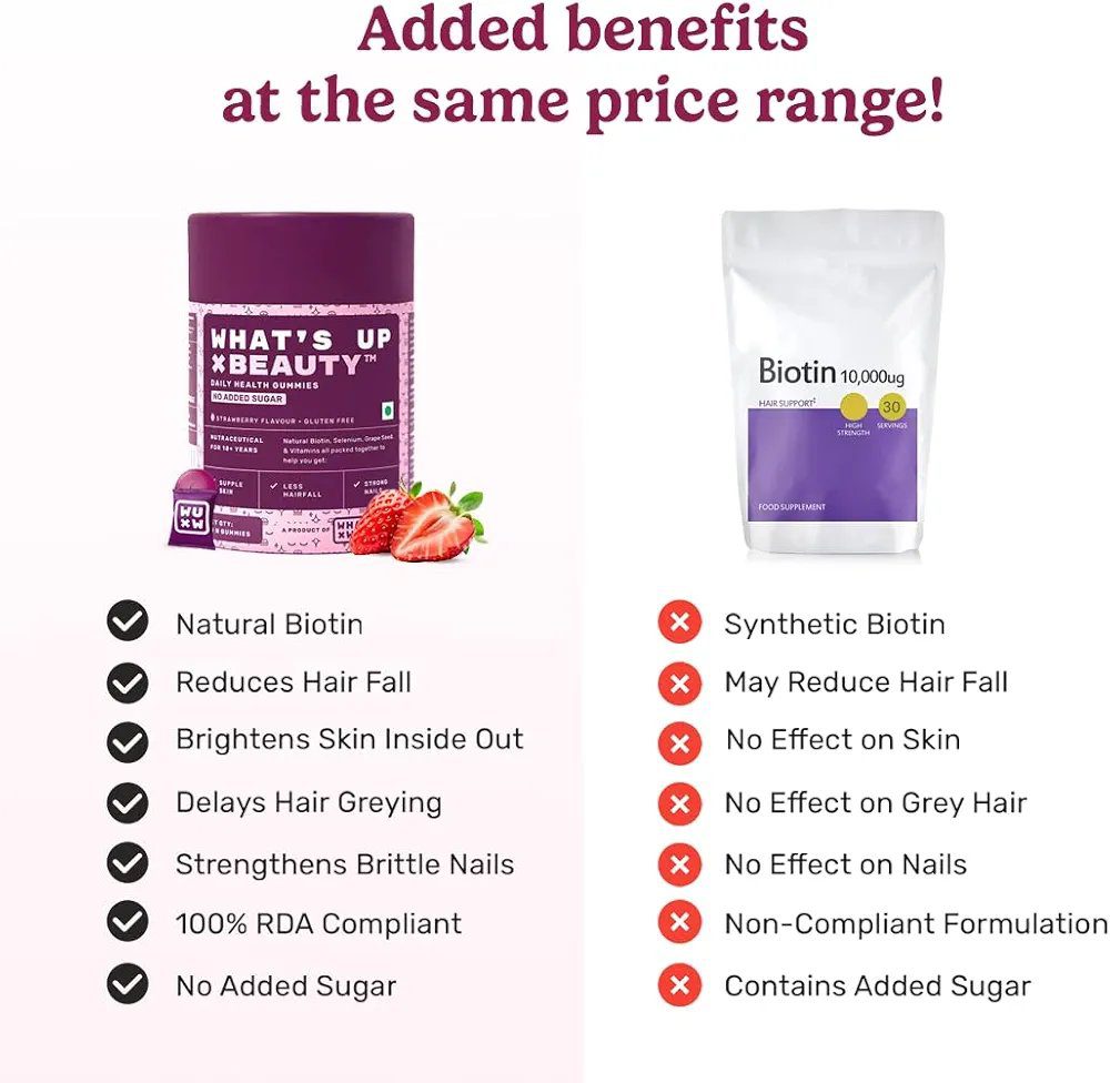 What's Up Wellness Natural Biotin Gummies for Hair Growth, Bright Skin & Strong Nails | 30 Days Pack |