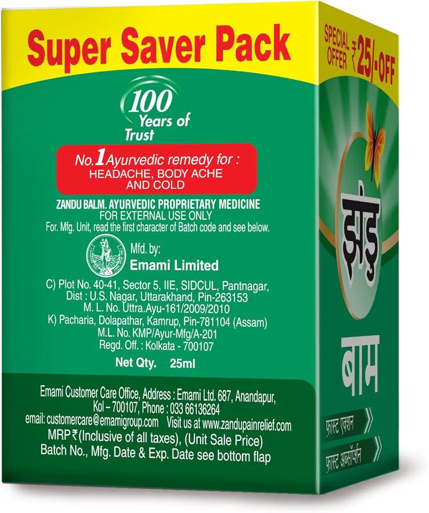 Zandu Balm, 25ml, Ayurvedic balm for effective relief from Headache, Body Pain, Sprain and Cold
